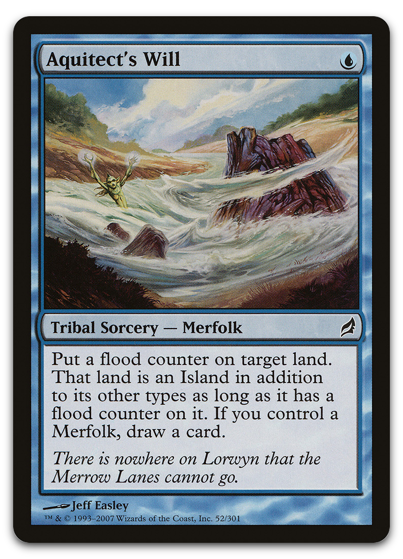 | Card Text | Put a flood counter on target land. That land is an Island in addition to its other types for as long as it has a flood counter on it. If you control a Merfolk, draw a card. |
