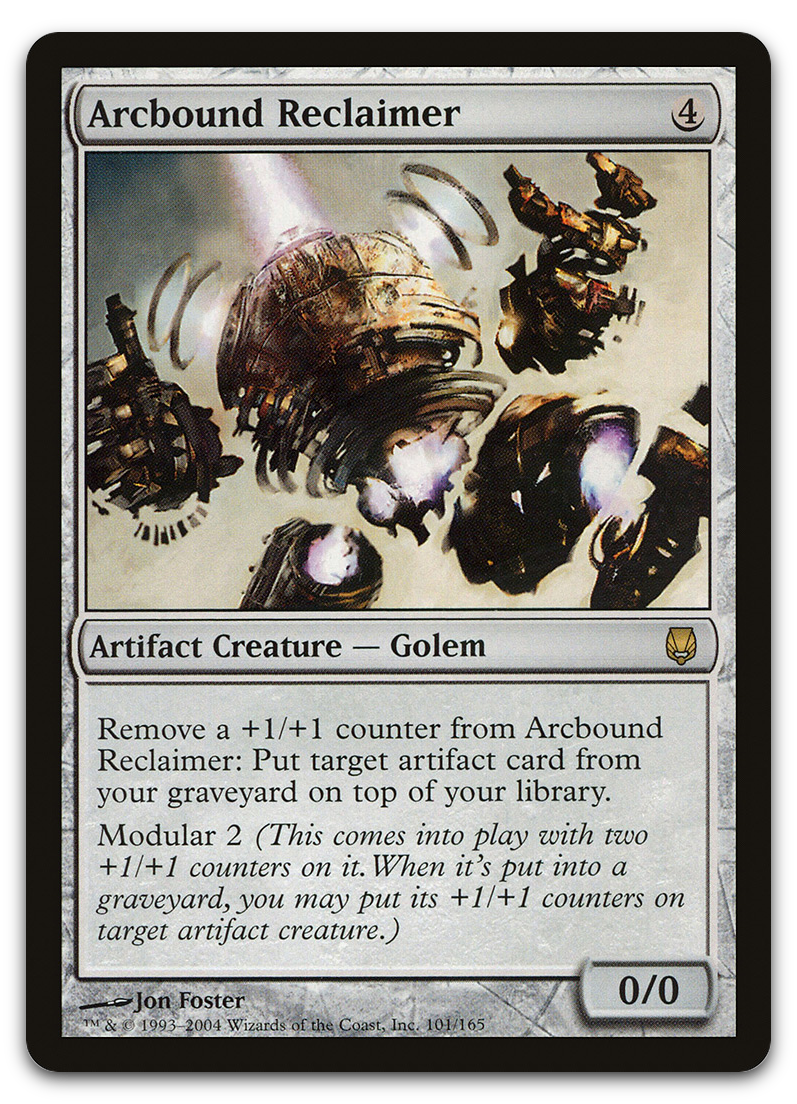 | Card Text | Remove a +1/+1 counter from this creature: Put target artifact card from your graveyard on top of your library. Modular 2 (This creature enters with two +1/+1 counters on it. When it dies, you may put its +1/+1 counters on target artifact creature.) |