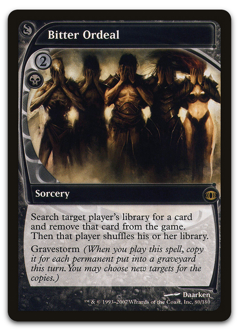 | Card Text | Search target player's library for a card and exile it. Then that player shuffles. Gravestorm (When you cast this spell, copy it for each permanent put into a graveyard this turn. You may choose new targets for the copies.) |