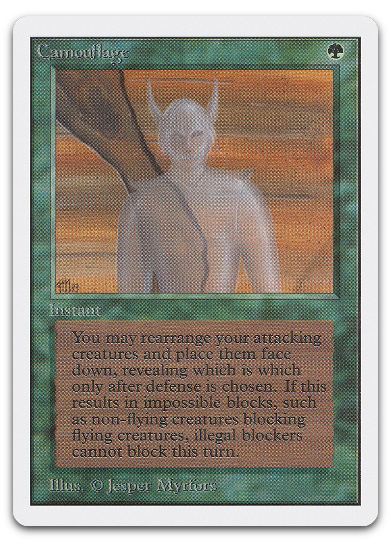 | Card Text | Cast this spell only during your declare attackers step. This turn, instead of declaring blockers, each defending player chooses any number of creatures they control and divides them into a number of piles equal to the number of attacking creatures for whom that player is the defending player. Creatures those players control that can block additional creatures may likewise be put into additional piles. Assign each pile to a different one of those attacking creatures at random. Each creature in a pile that can block the creature that pile is assigned to does so. (Piles can be empty.) |