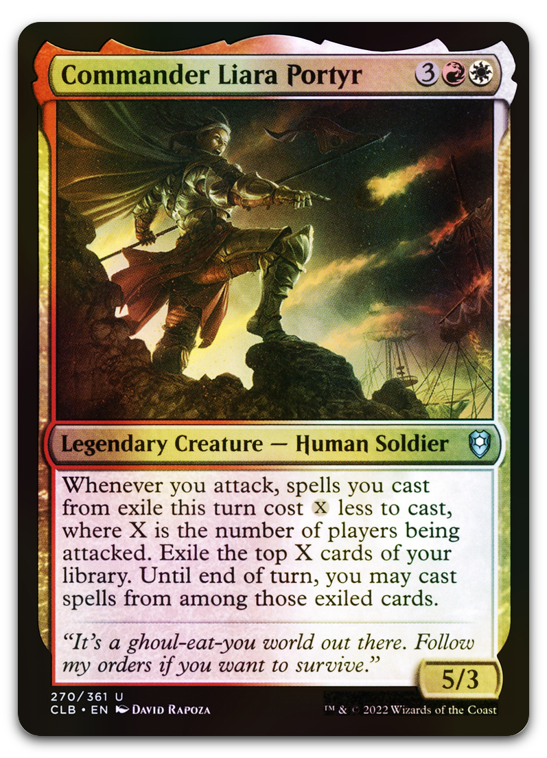 | Card Text | Whenever you attack, spells you cast from exile this turn cost {X} less to cast, where X is the number of players being attacked. Exile the top X cards of your library. Until end of turn, you may cast spells from among those exiled cards. |