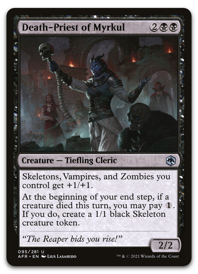 | Card Text | Skeletons, Vampires, and Zombies you control get +1/+1. At the beginning of your end step, if a creature died this turn, you may pay {1}. If you do, create a 1/1 black Skeleton creature token. |