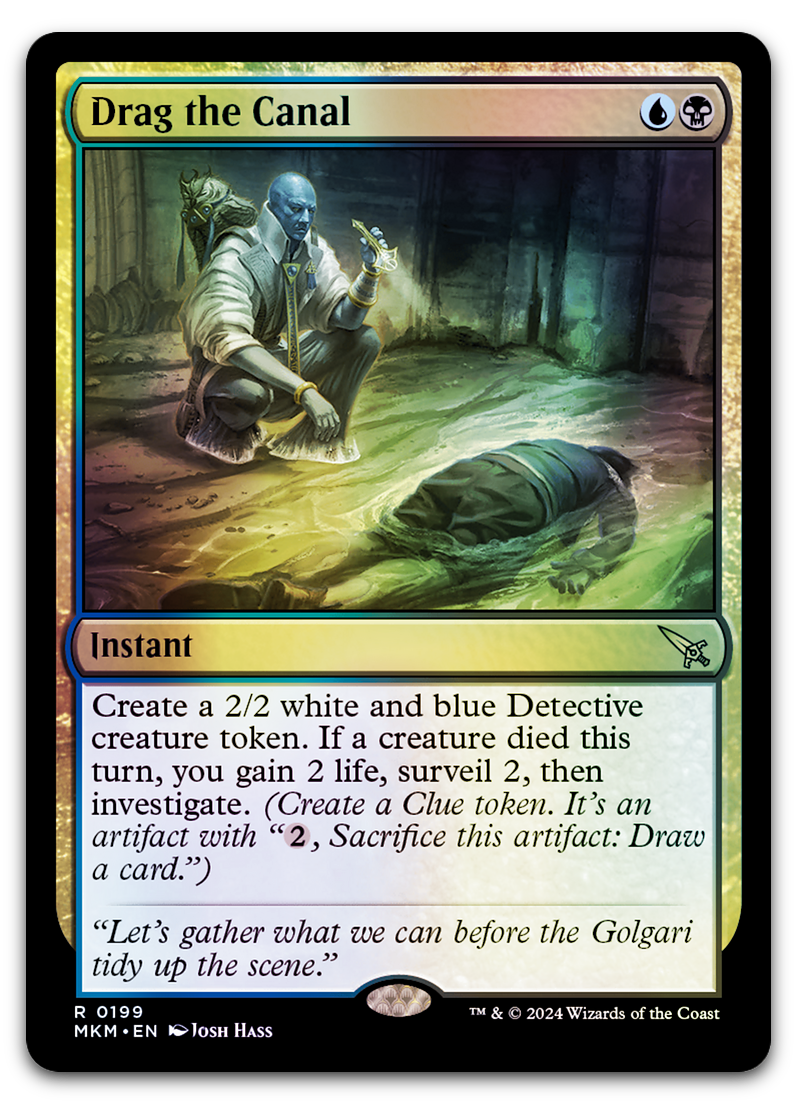 | Card Text | Create a 2/2 white and blue Detective creature token. If a creature died this turn, you gain 2 life, surveil 2, then investigate. (Create a Clue token. It's an artifact with "{2}, Sacrifice this token: Draw a card.") |