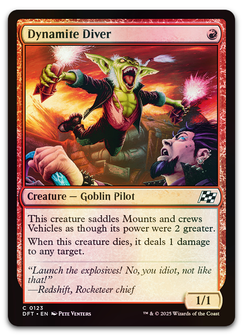 | Card Text | This creature saddles Mounts and crews Vehicles as though its power were 2 greater. When this creature dies, it deals 1 damage to any target. |