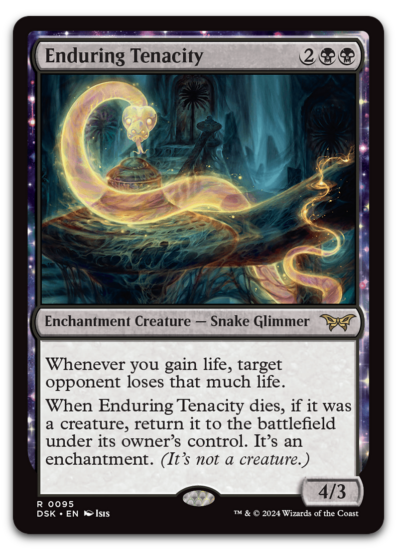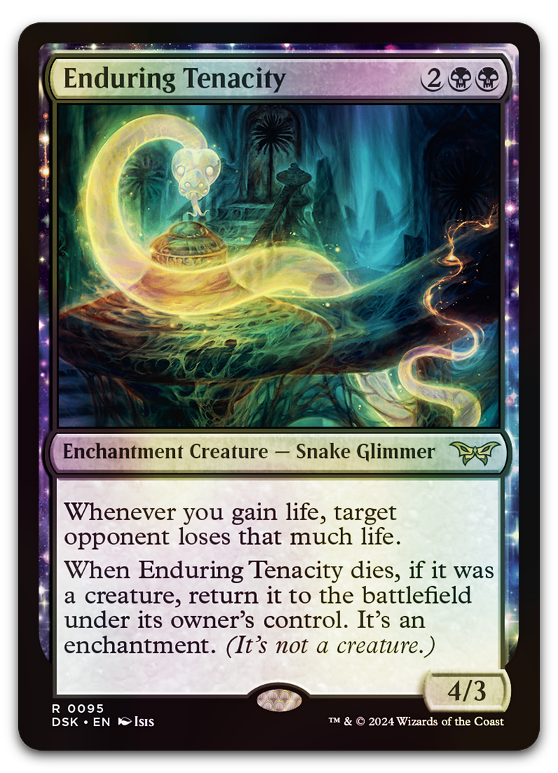 | Card Text | Whenever you gain life, target opponent loses that much life. When Enduring Tenacity dies, if it was a creature, return it to the battlefield under its owner's control. It's an enchantment. (It's not a creature.) |