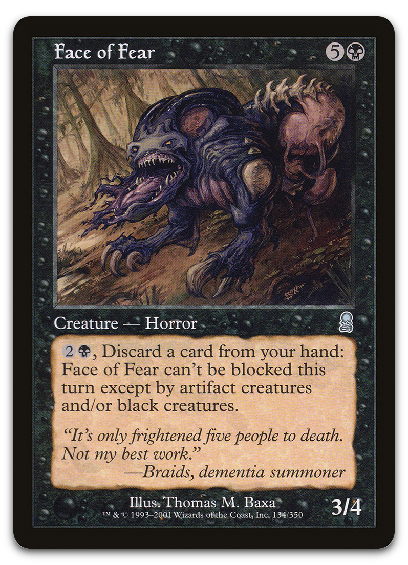 | Card Text | {2}{B}, Discard a card: This creature gains fear until end of turn. (It can't be blocked except by artifact creatures and/or black creatures.) |