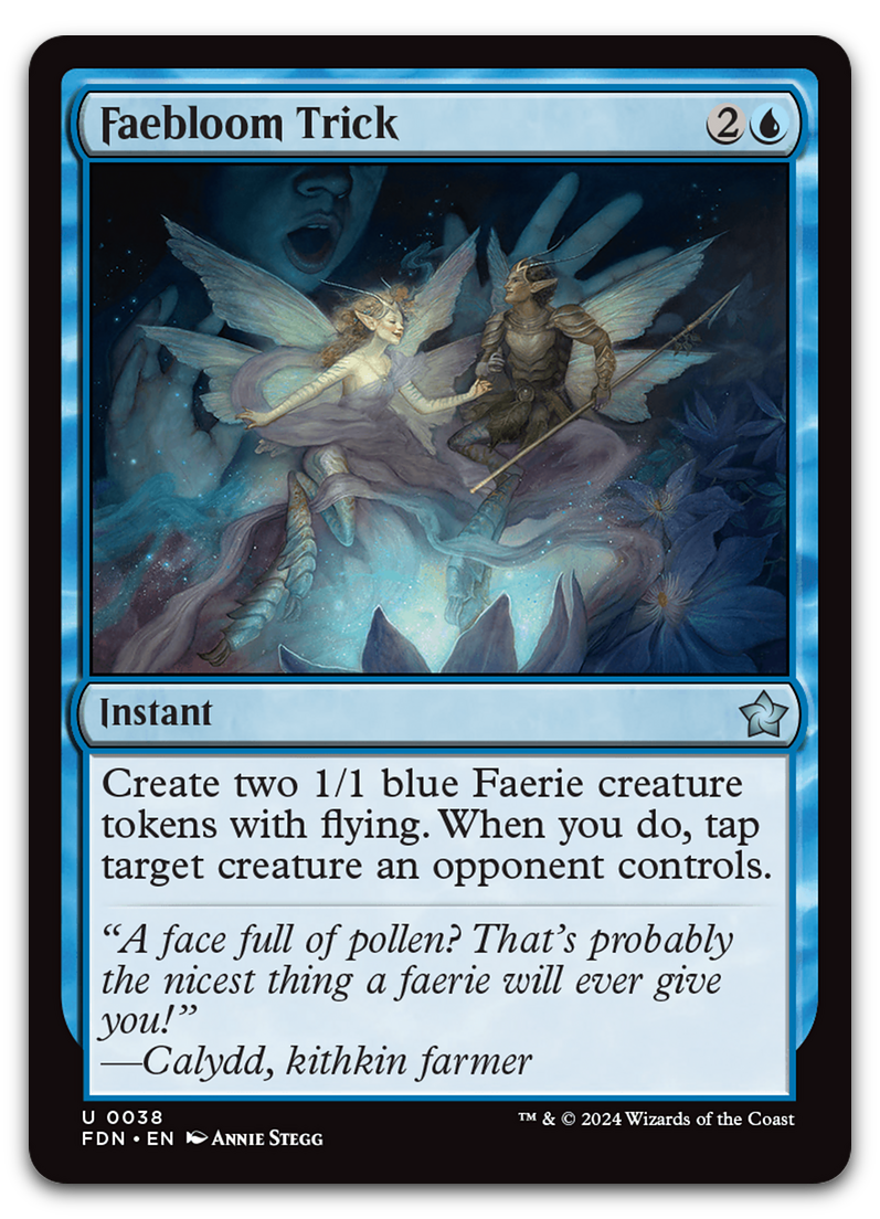 | Card Text | Create two 1/1 blue Faerie creature tokens with flying. When you do, tap target creature an opponent controls. |