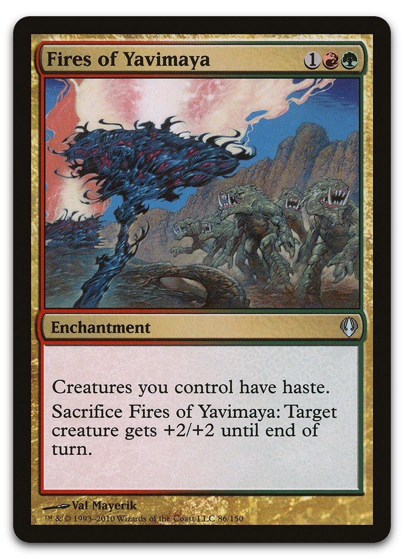 | Card Text | Creatures you control have haste. Sacrifice this enchantment: Target creature gets +2/+2 until end of turn. |