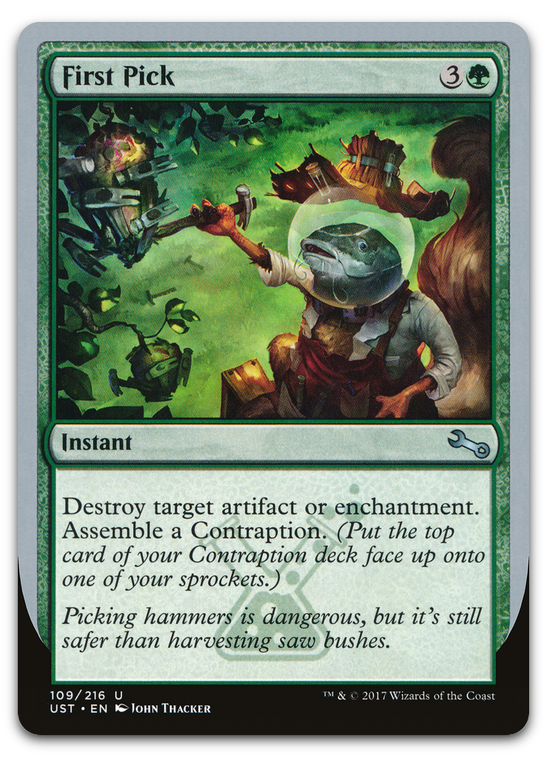 | Card Text | Destroy target artifact or enchantment. Assemble a Contraption. (Put the top card of your Contraption deck face up onto one of your sprockets.) |