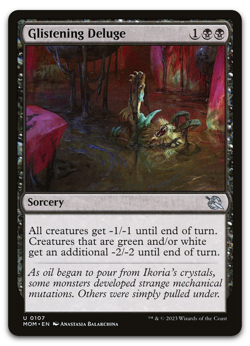 | Card Text | All creatures get -1/-1 until end of turn. Creatures that are green and/or white get an additional -2/-2 until end of turn. |