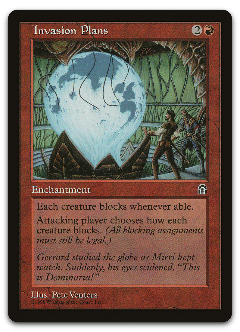 | Card Text | All creatures block each combat if able. The attacking player chooses how each creature blocks each combat. |
