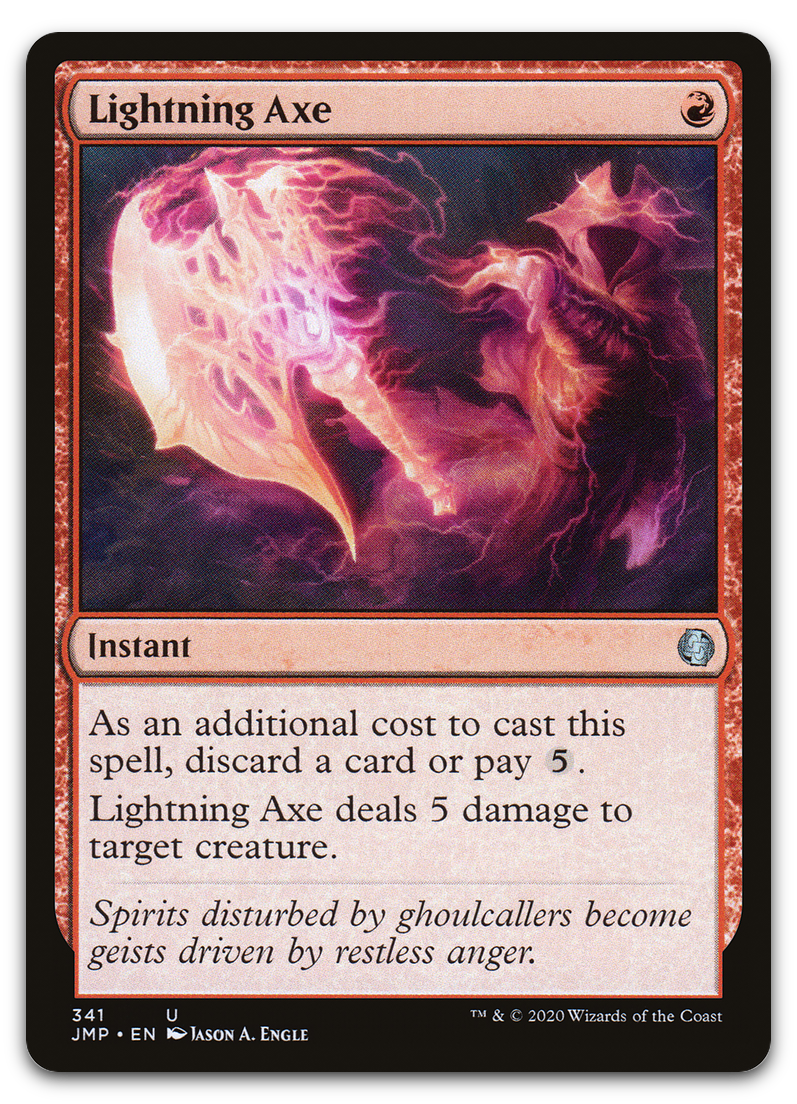 | Card Text | As an additional cost to cast this spell, discard a card or pay {5}. Lightning Axe deals 5 damage to target creature. |