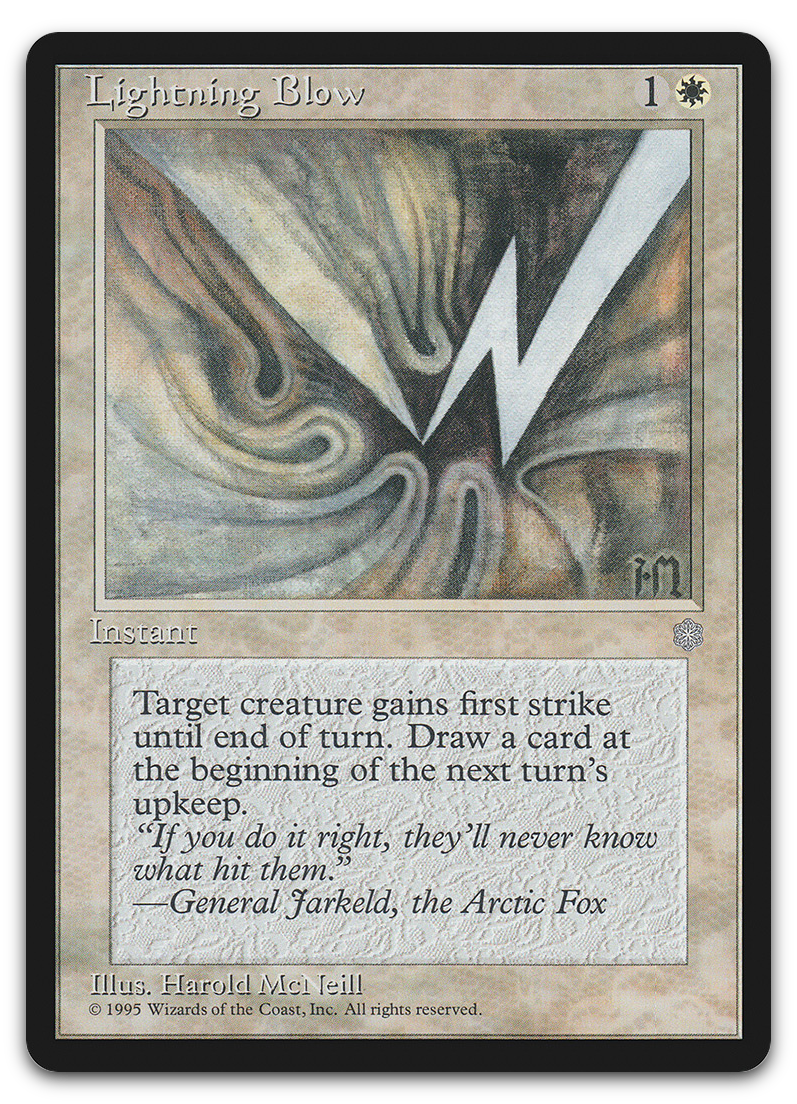 | Card Text | Target creature gains first strike until end of turn. Draw a card at the beginning of the next turn's upkeep. |