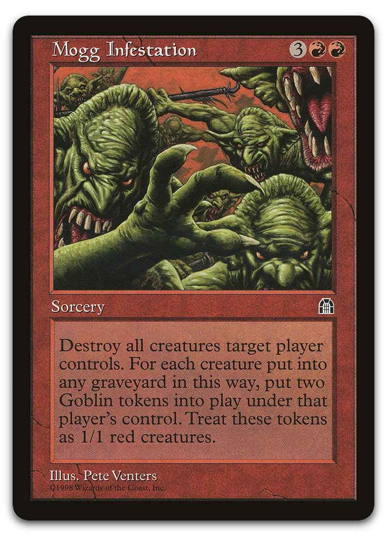 | Card Text | Destroy all creatures target player controls. For each creature that died this way, that player creates two 1/1 red Goblin creature tokens. |