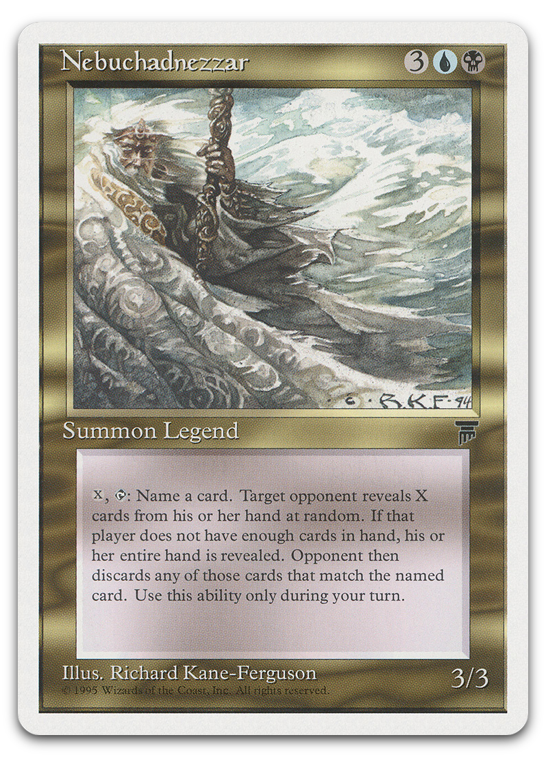 | Card Text | {X}, {T}: Choose a card name. Target opponent reveals X cards at random from their hand. Then that player discards all cards with that name revealed this way. Activate only during your turn. |
