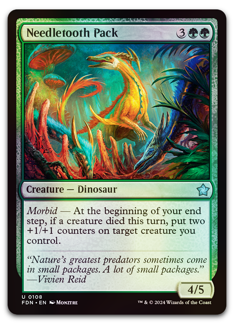 | Card Text | Morbid — At the beginning of your end step, if a creature died this turn, put two +1/+1 counters on target creature you control. |