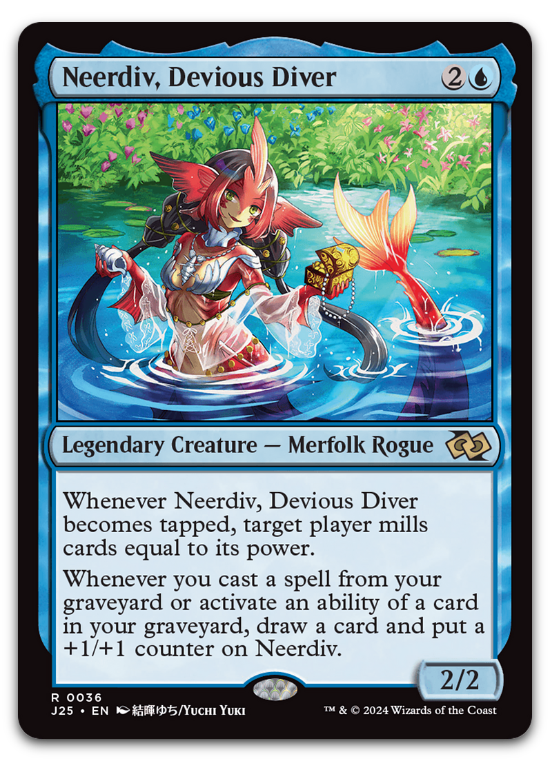 | Card Text | Whenever Neerdiv becomes tapped, target player mills cards equal to its power. Whenever you cast a spell from your graveyard or activate an ability of a card in your graveyard, draw a card and put a +1/+1 counter on Neerdiv. |