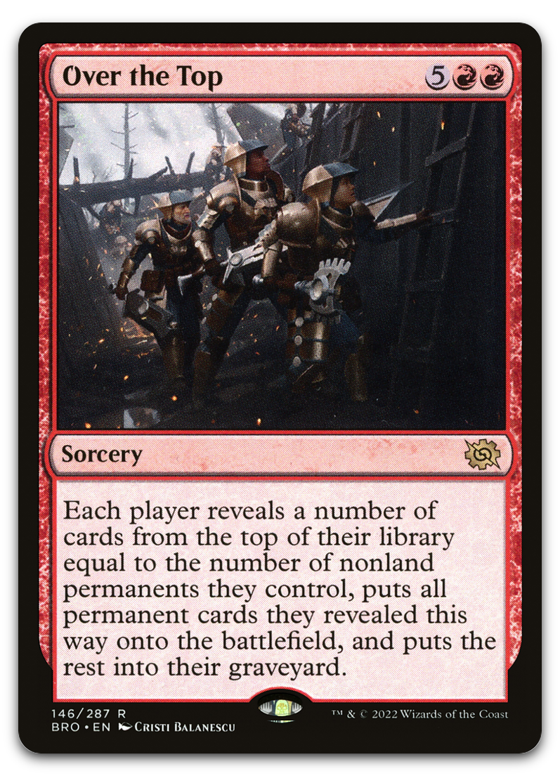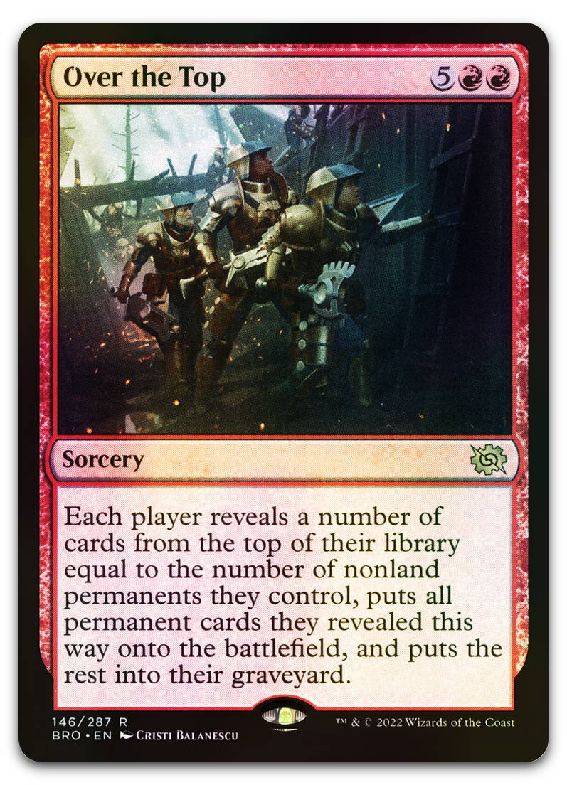 | Card Text | Each player reveals a number of cards from the top of their library equal to the number of nonland permanents they control, puts all permanent cards they revealed this way onto the battlefield, and puts the rest into their graveyard. |