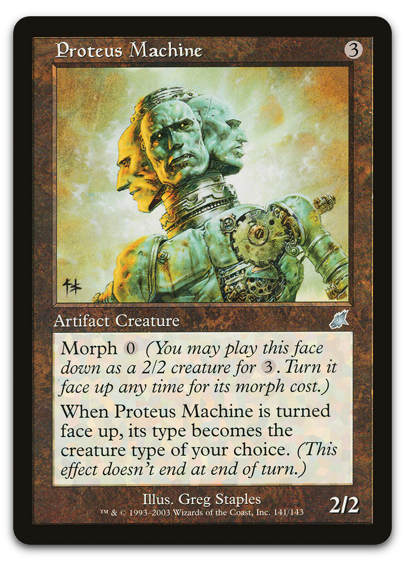 | Card Text | Morph {0} (You may cast this card face down as a 2/2 creature for {3}. Turn it face up any time for its morph cost.) When this creature is turned face up, it becomes the creature type of your choice. (This effect lasts indefinitely.) |
