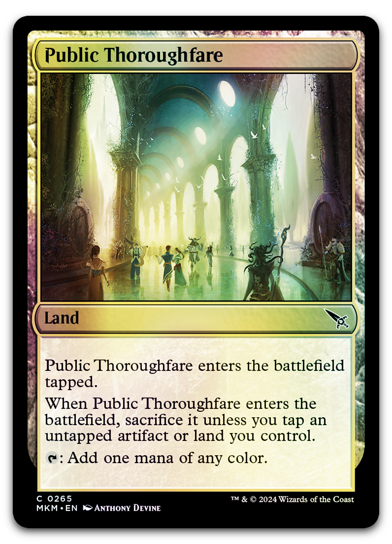 | Card Text | This land enters tapped. When this land enters, sacrifice it unless you tap an untapped artifact or land you control. {T}: Add one mana of any color. |