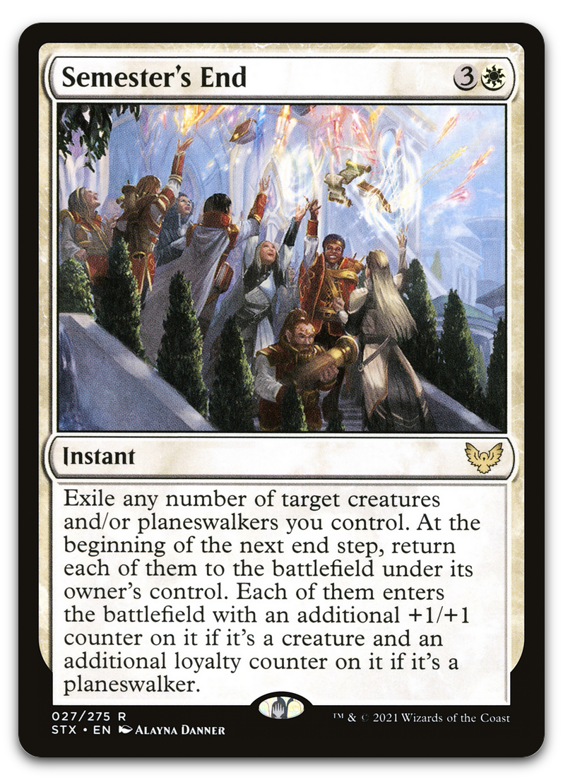| Card Text | Exile any number of target creatures and/or planeswalkers you control. At the beginning of the next end step, return each of them to the battlefield under its owner's control. Each of them enters with an additional +1/+1 counter on it if it's a creature and an additional loyalty counter on it if it's a planeswalker. |