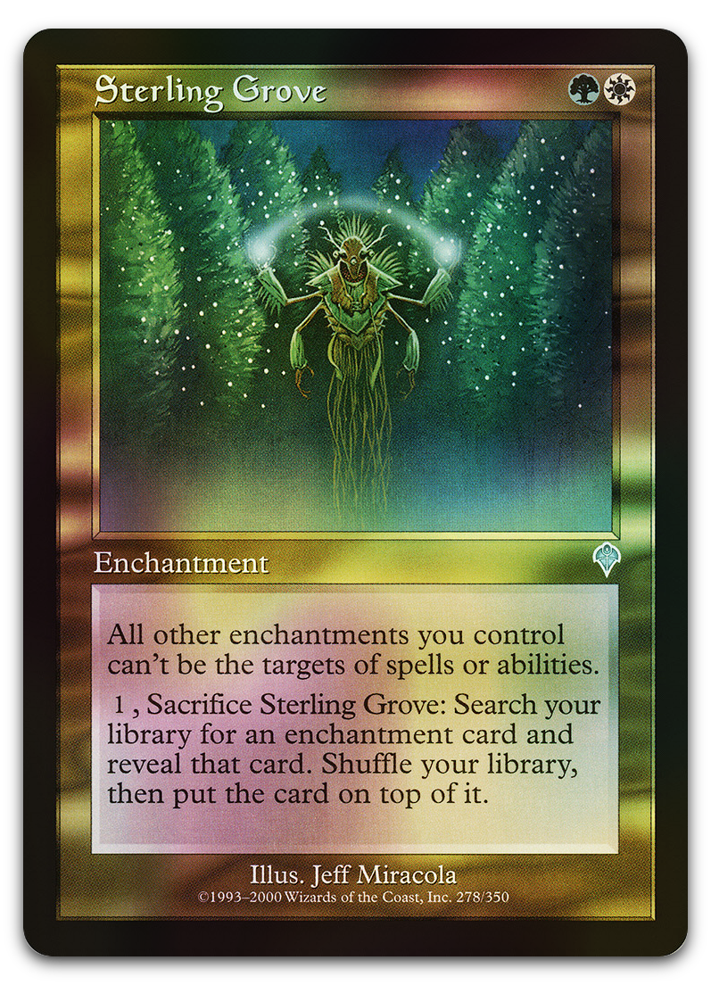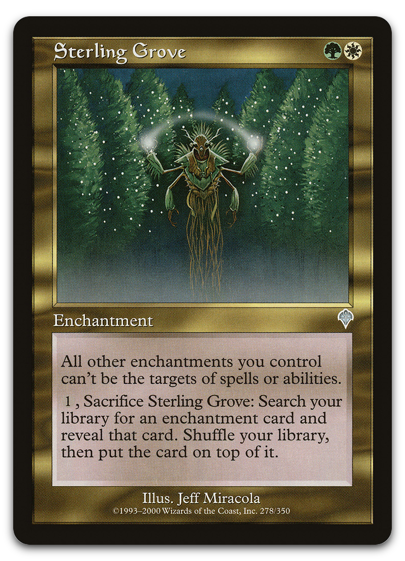 | Card Text | Other enchantments you control have shroud. (They can't be the targets of spells or abilities.) {1}, Sacrifice this enchantment: Search your library for an enchantment card, reveal it, then shuffle and put that card on top. |
