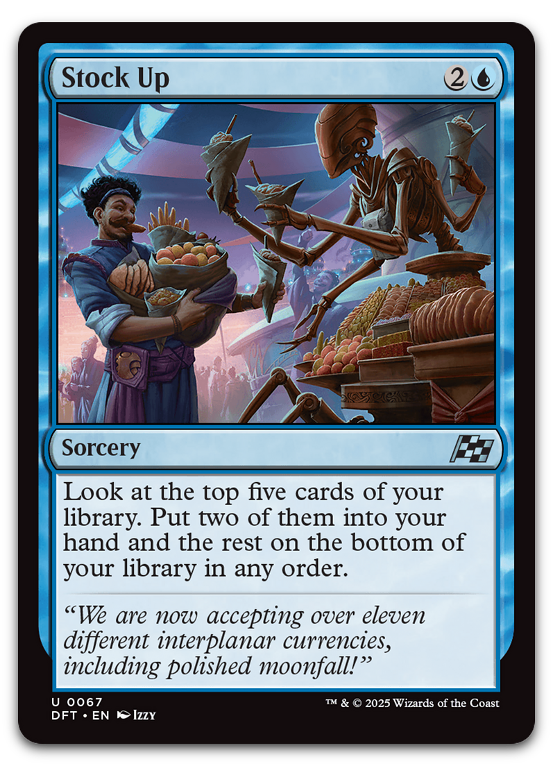 | Card Text | Look at the top five cards of your library. Put two of them into your hand and the rest on the bottom of your library in any order. |